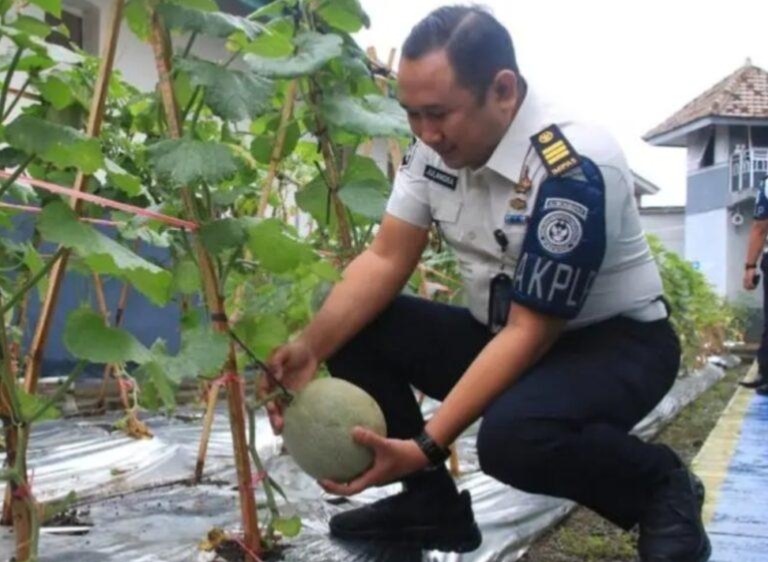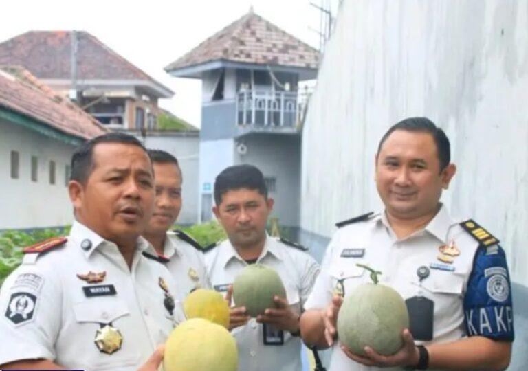 Banyuwangi, Jatim Suryamediagrup.com Lembaga Pemasyarakatan (Lapas) Kelas IIA Banyuwangi menunjukkan komitmen nyata dalam mendukung program ketahanan pangan nasional melalui pemanfaatan lahan produktif di area terbatas. Bertempat di area brandgang yang merupakan jalur pengamanan, Lapas Banyuwangi sukses menggelar panen buah melon hasil budidaya warga binaan, Selasa (24/02).